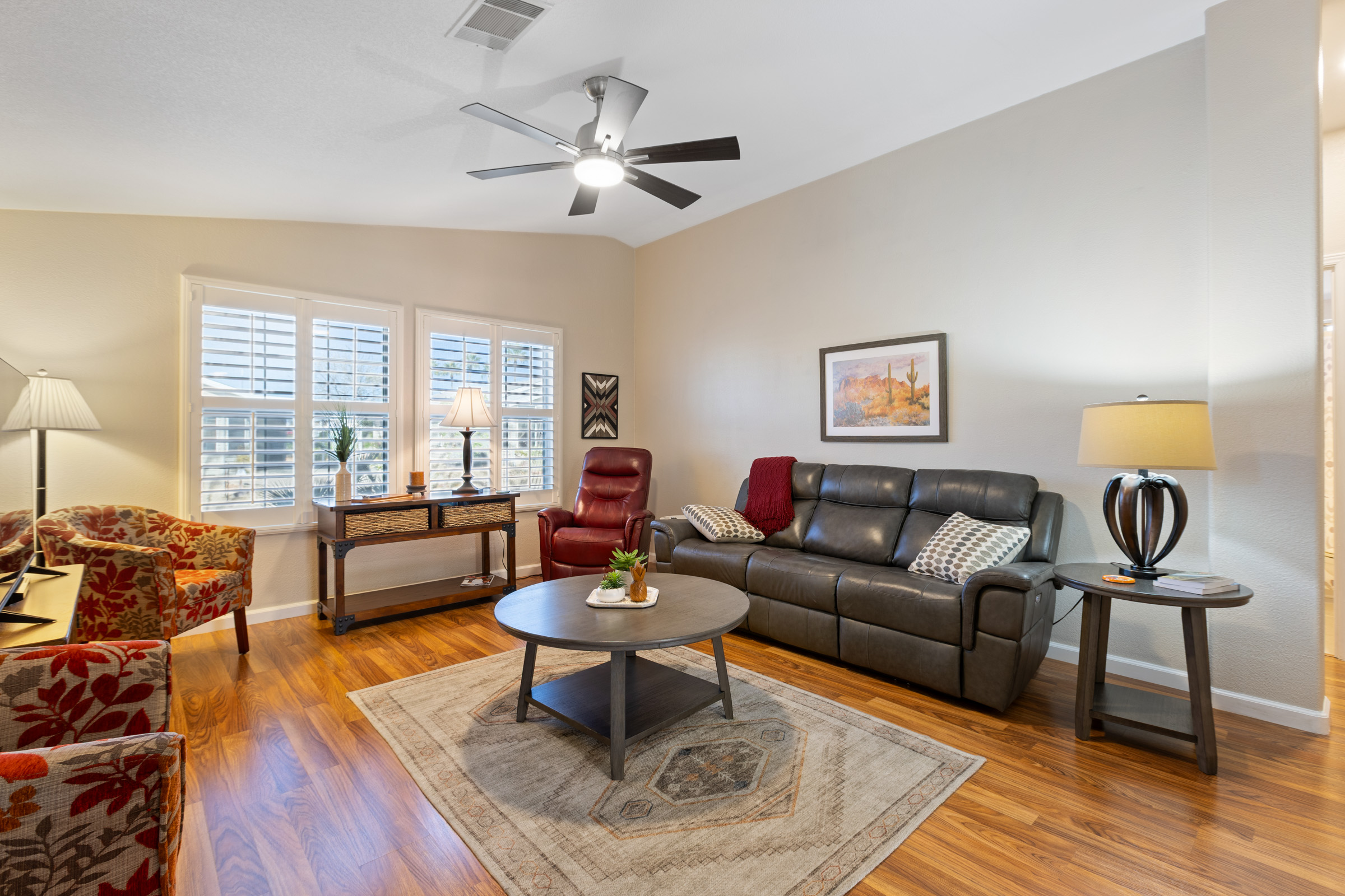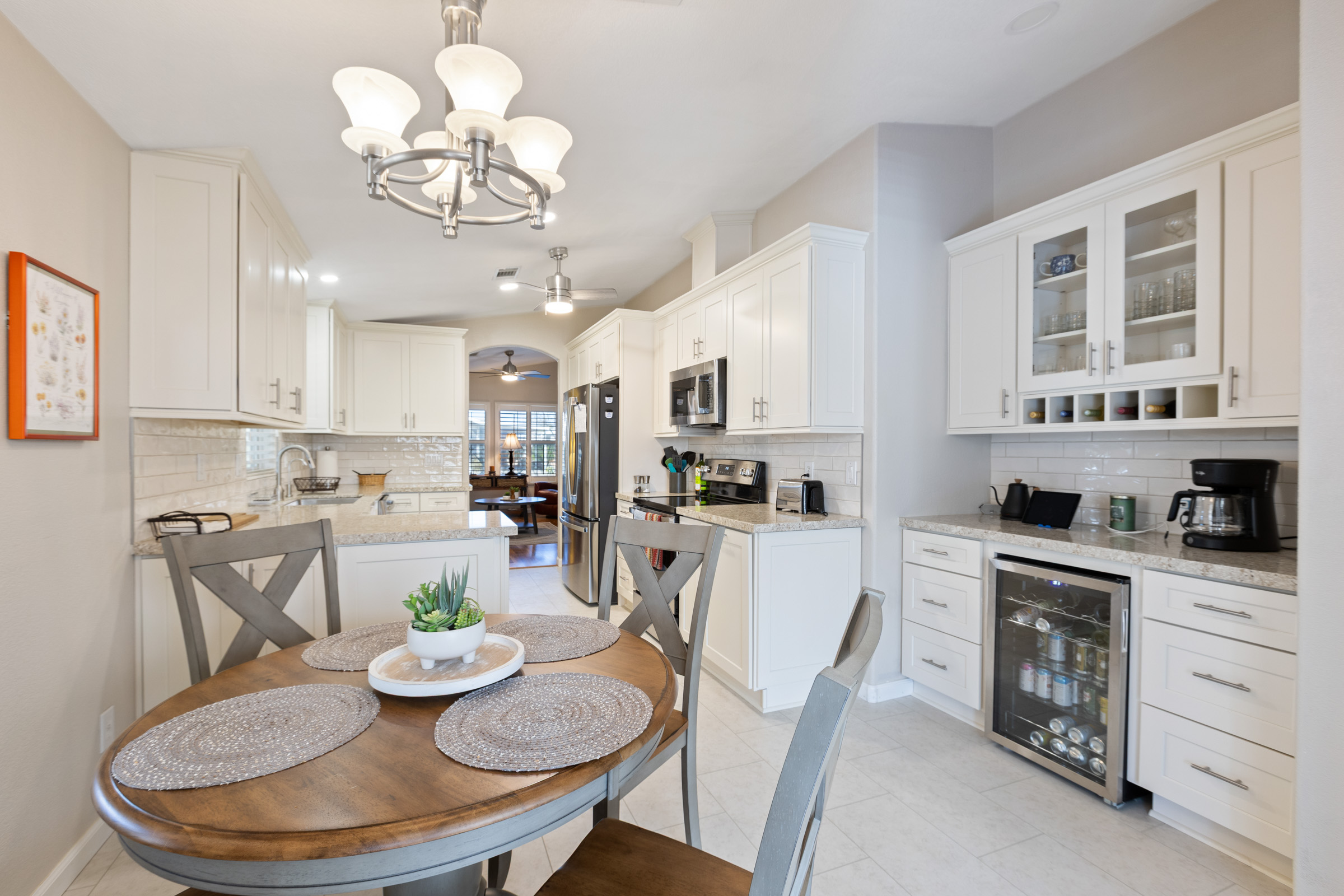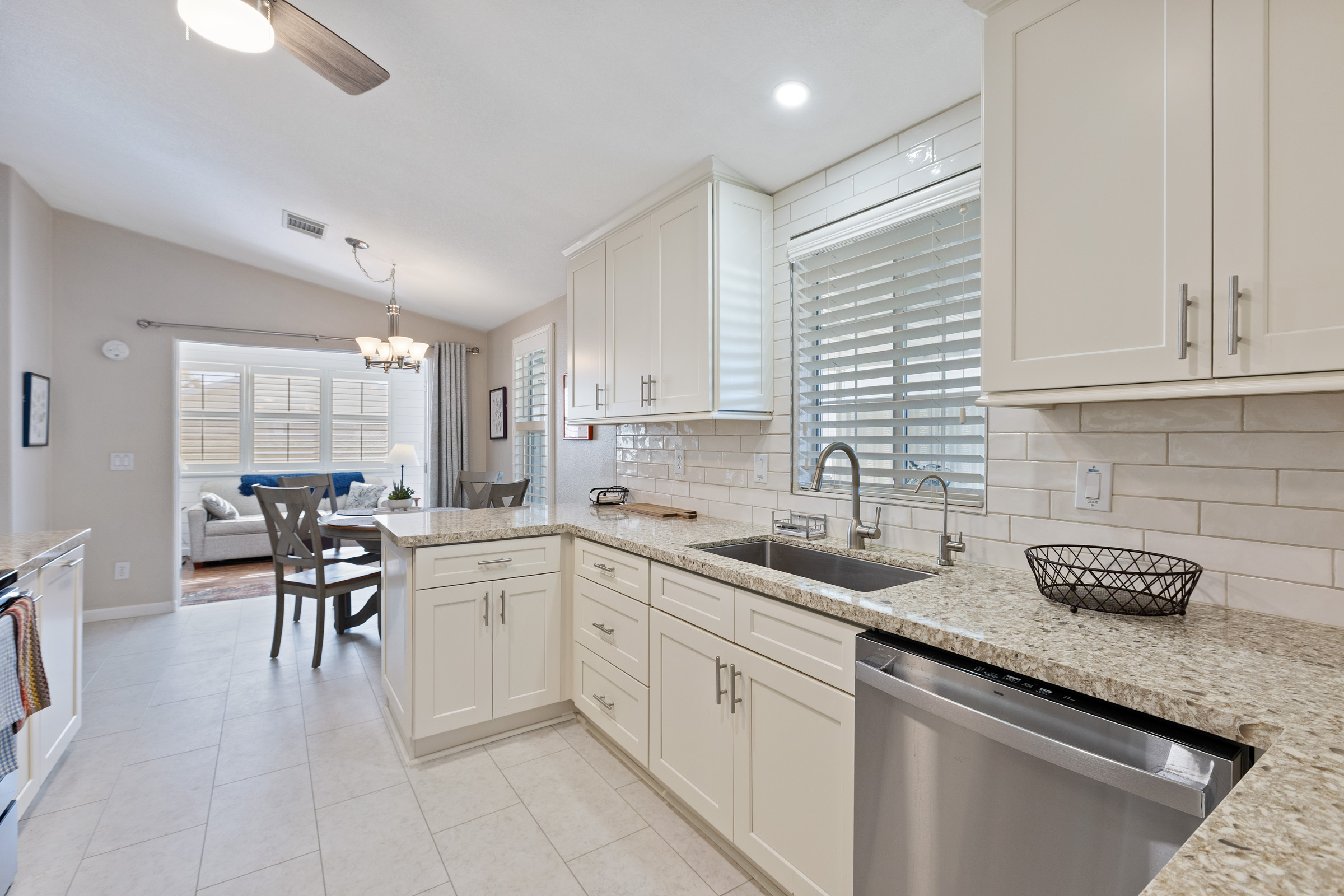 This stunning move-in-ready home offers the perfect blend of modern upgrades and peace of mind. The heart of the home is a fully remodeled kitchen featuring new cabinets, granite countertops, and stainless steel appliances. Enjoy a completely carpet-free interior with newly painted walls, elegant tile, and durable vinyl plank floors throughout. The living space extends into a versatile, all-seasons Arizona room, while shutters and screen doors add both charm and functionality. Step outside to your private backyard, an ideal retreat for relaxation or entertaining.