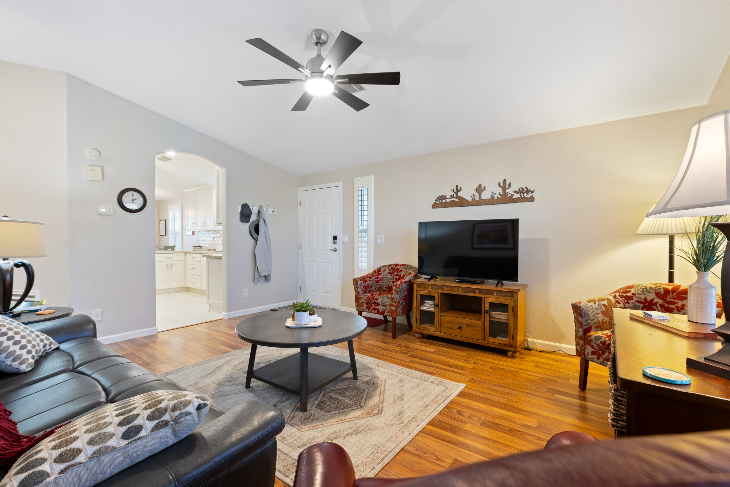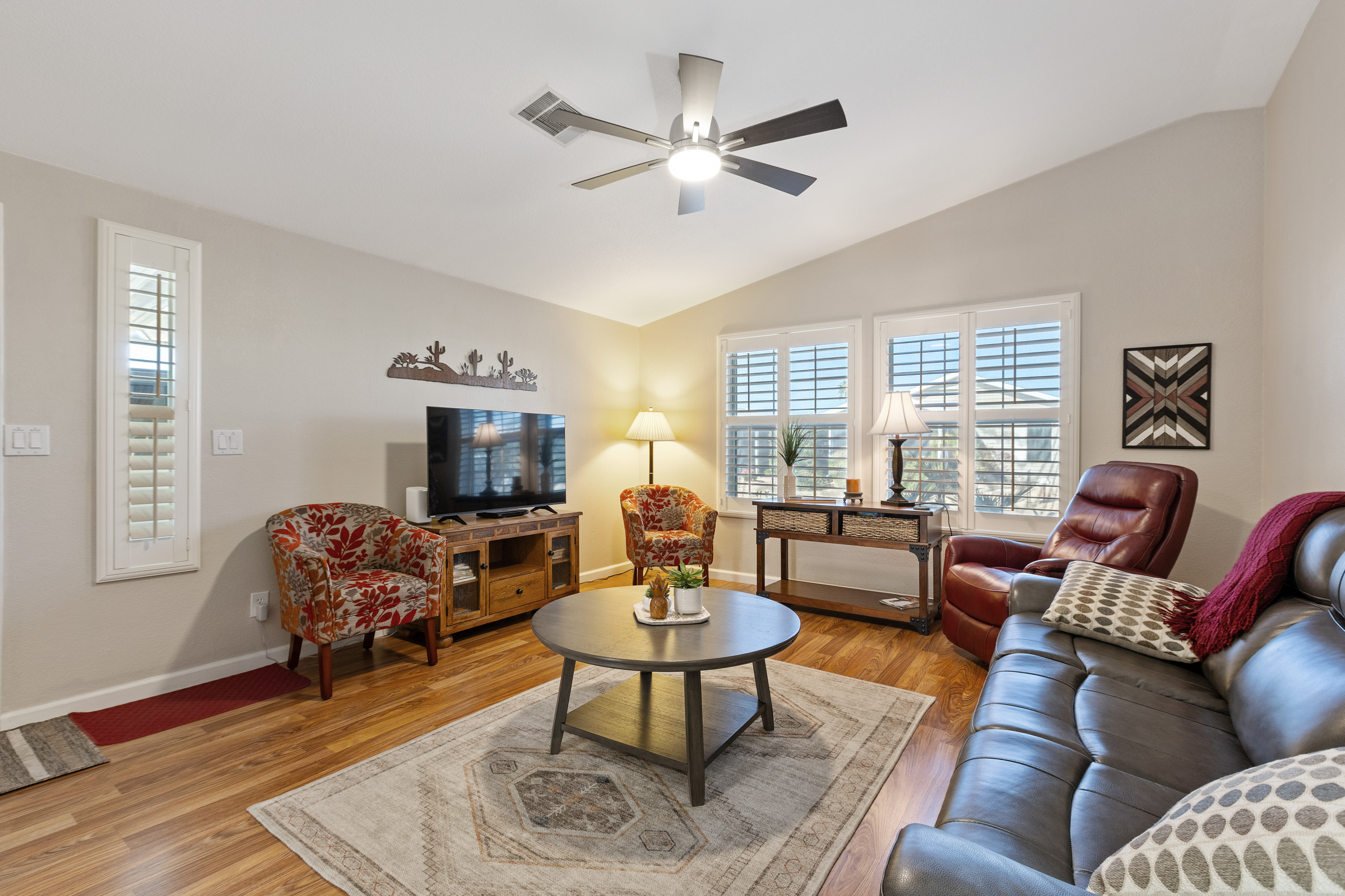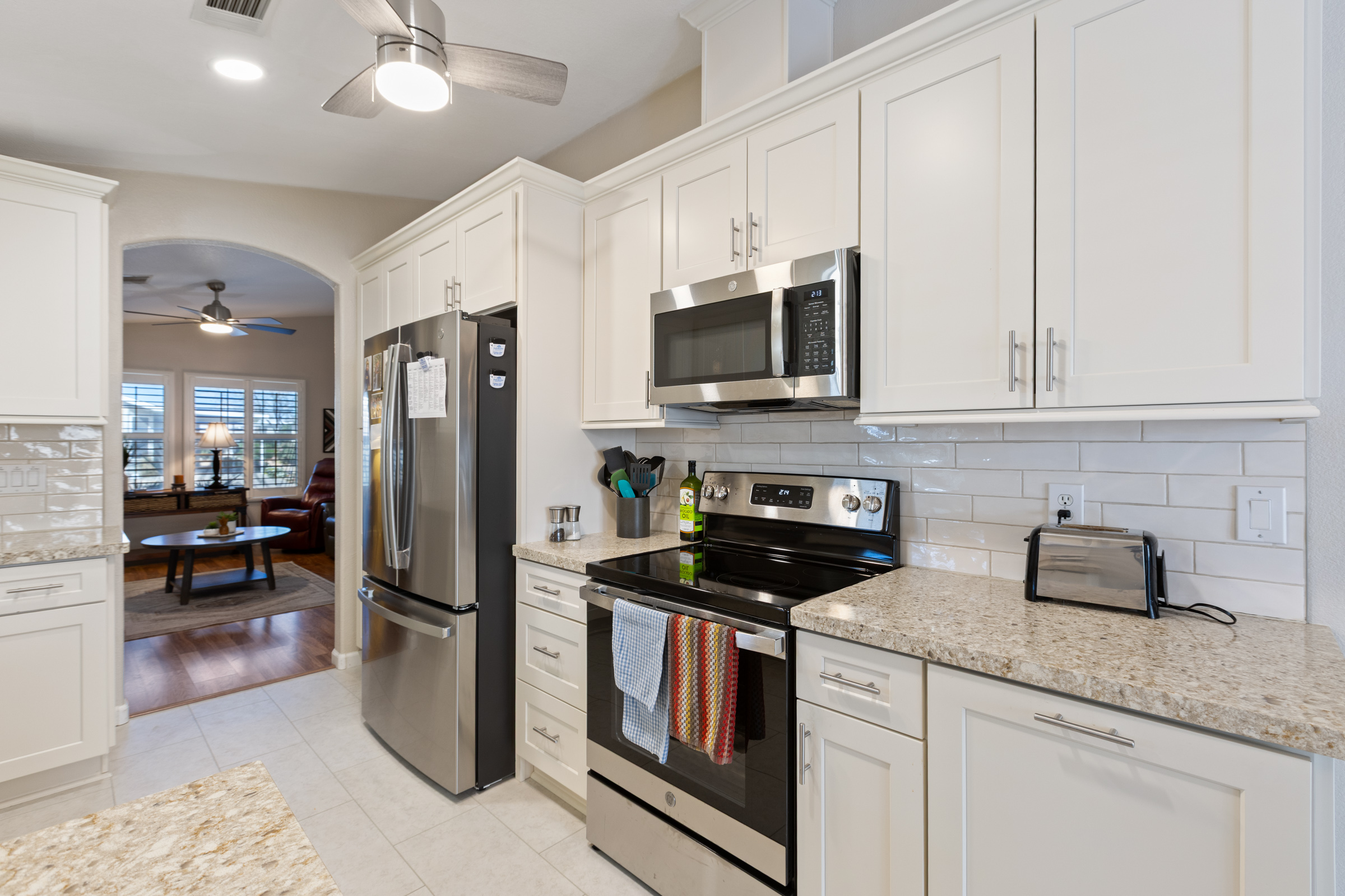 This stunning move-in-ready home offers the perfect blend of modern upgrades and peace of mind. The heart of the home is a fully remodeled kitchen featuring new cabinets, granite countertops, and stainless steel appliances. Enjoy a completely carpet-free interior with newly painted walls, elegant tile, and durable vinyl plank floors throughout. The living space extends into a versatile, all-seasons Arizona room, while shutters and screen doors add both charm and functionality. Step outside to your private backyard, an ideal retreat for relaxation or entertaining.