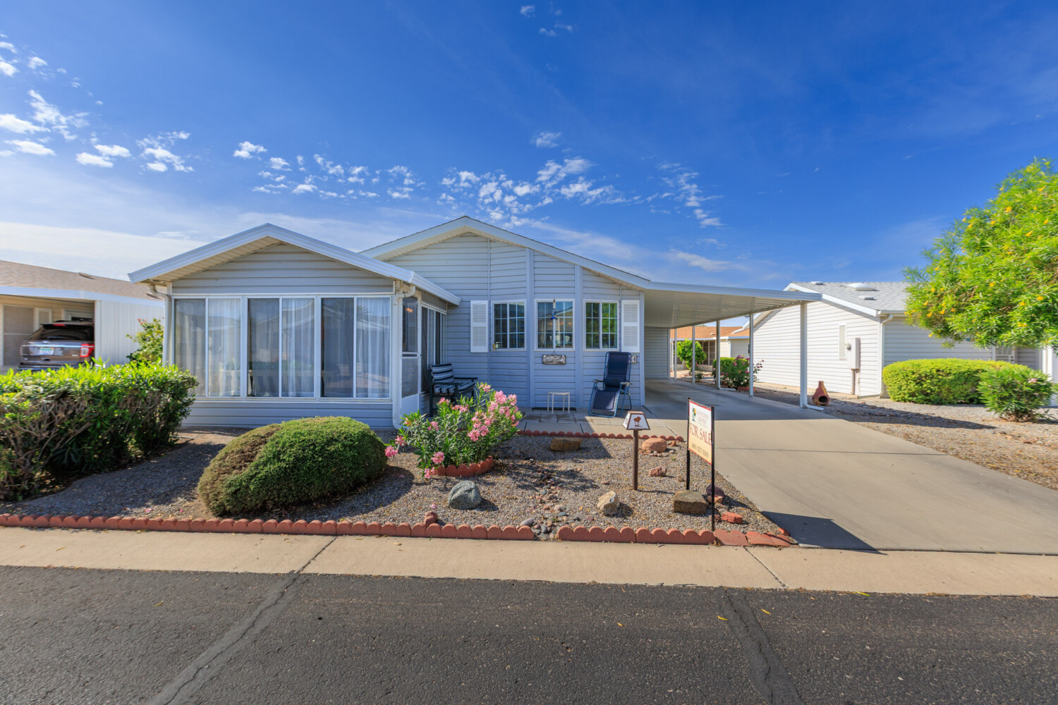 Fully furnished 2 bedroom 2 bath home. Water softener, RO, and a new dishwasher. Glassed in Az room. Newer roof. Heat pump and water heater replaced. 1107 sq ft. Priced right to live in a beautiful resort style community making lots of new friends and activities happening daily. Call today for a tour and check out our Open Houses once a month. 480-357-5508
