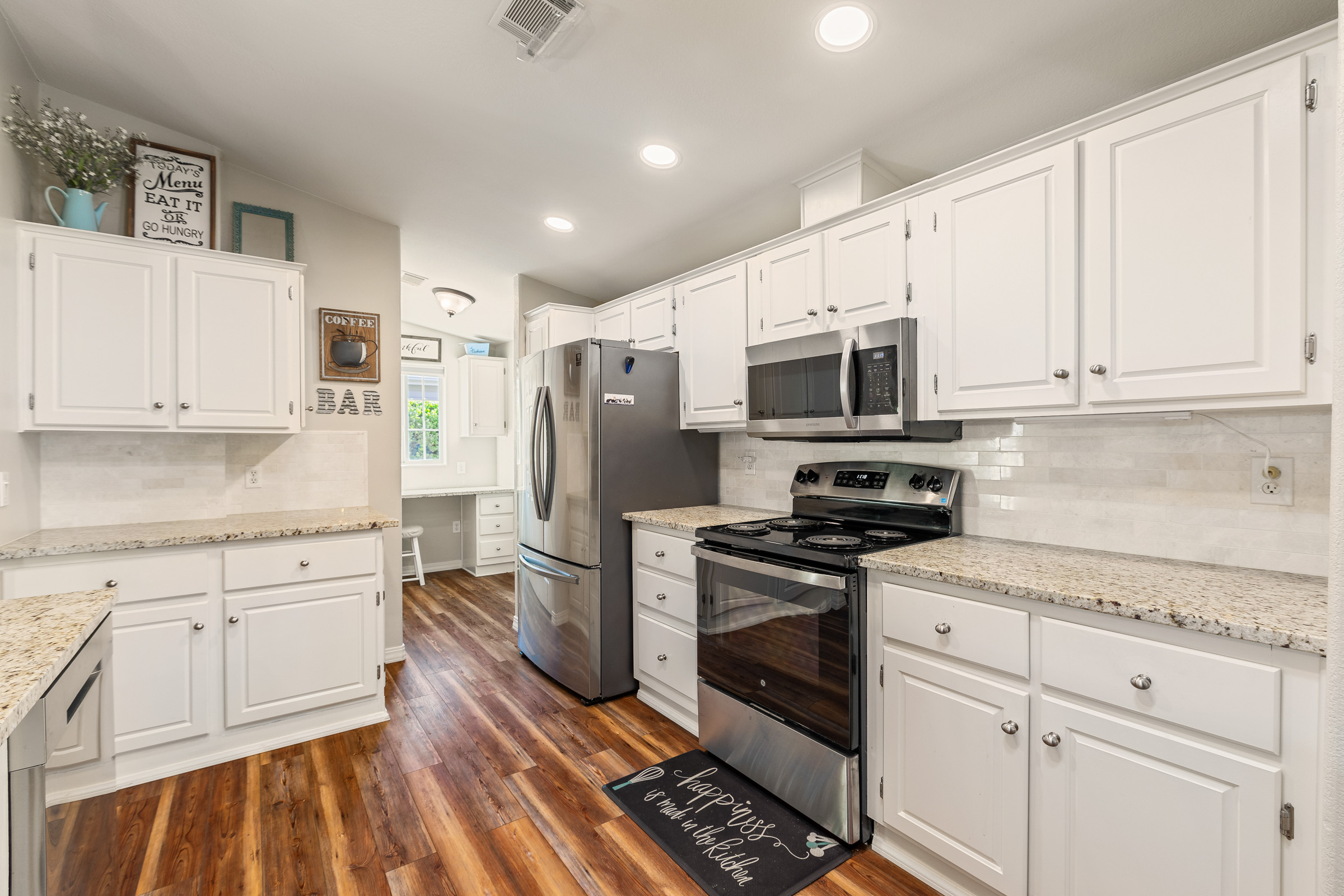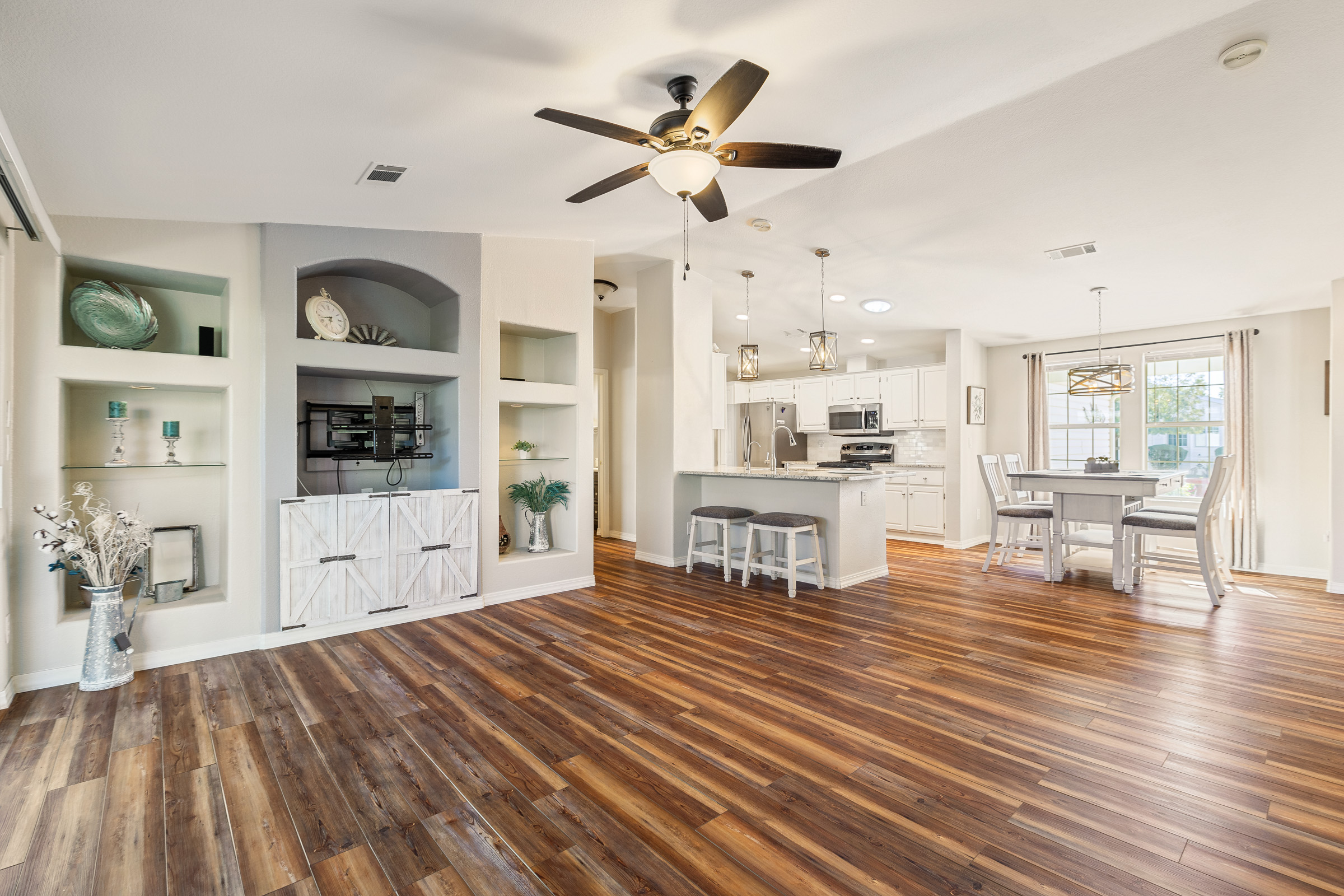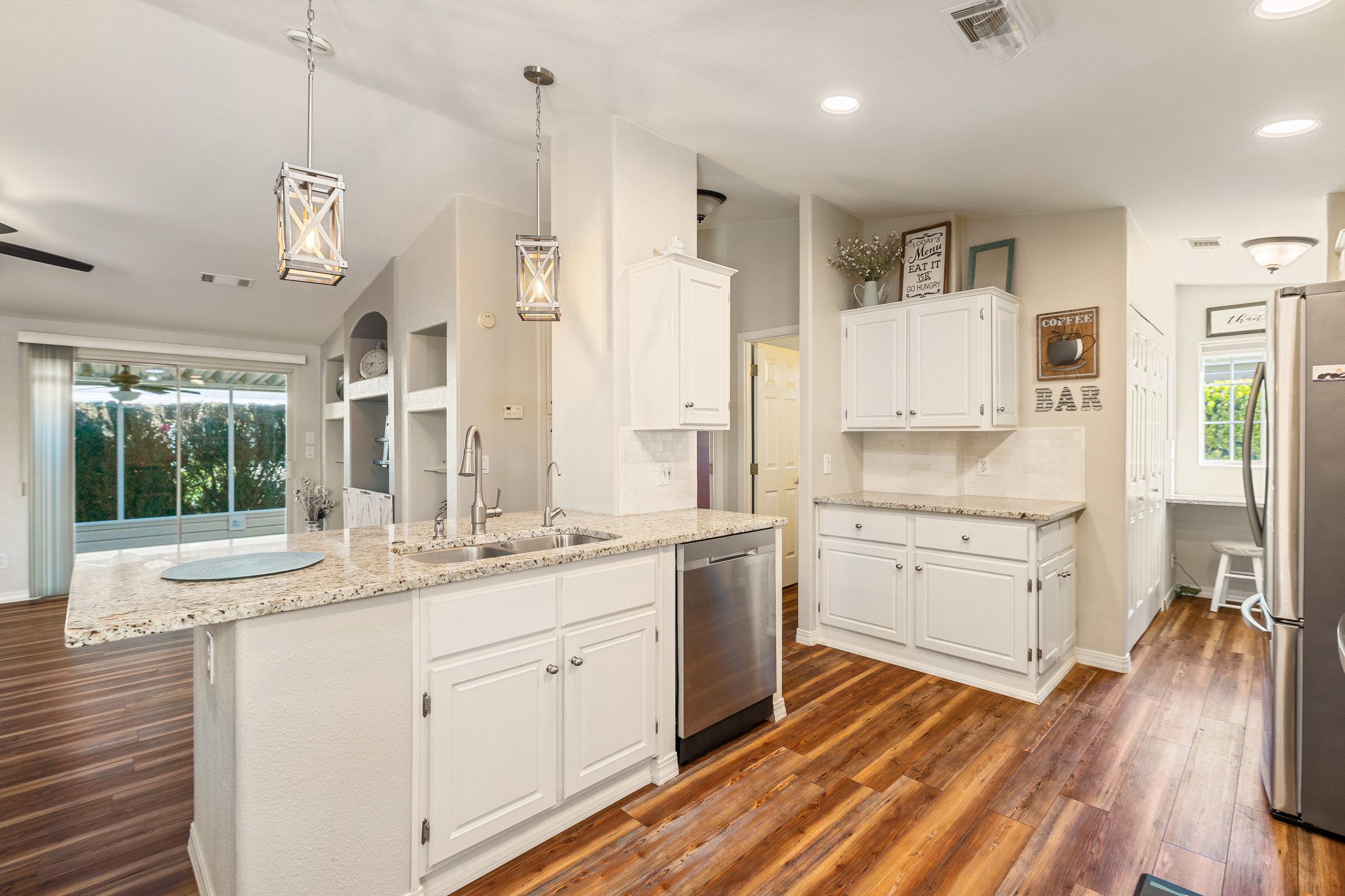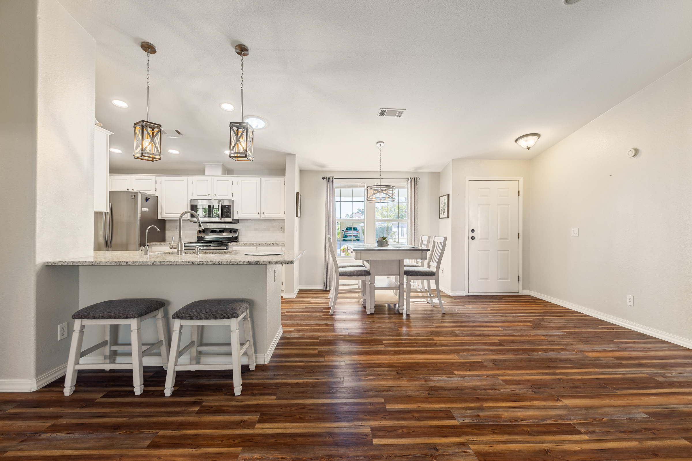 Beautiful 2-bedroom, 2-bath home featuring an open-concept layout with tons of upgrades throughout. The kitchen boasts stainless steel appliances and granite countertops, while the entire home offers zero carpet for a clean, modern feel. Enjoy the convenience of a 2-car garage and relax in the awesome private outdoor space, perfect for entertaining or unwinding.