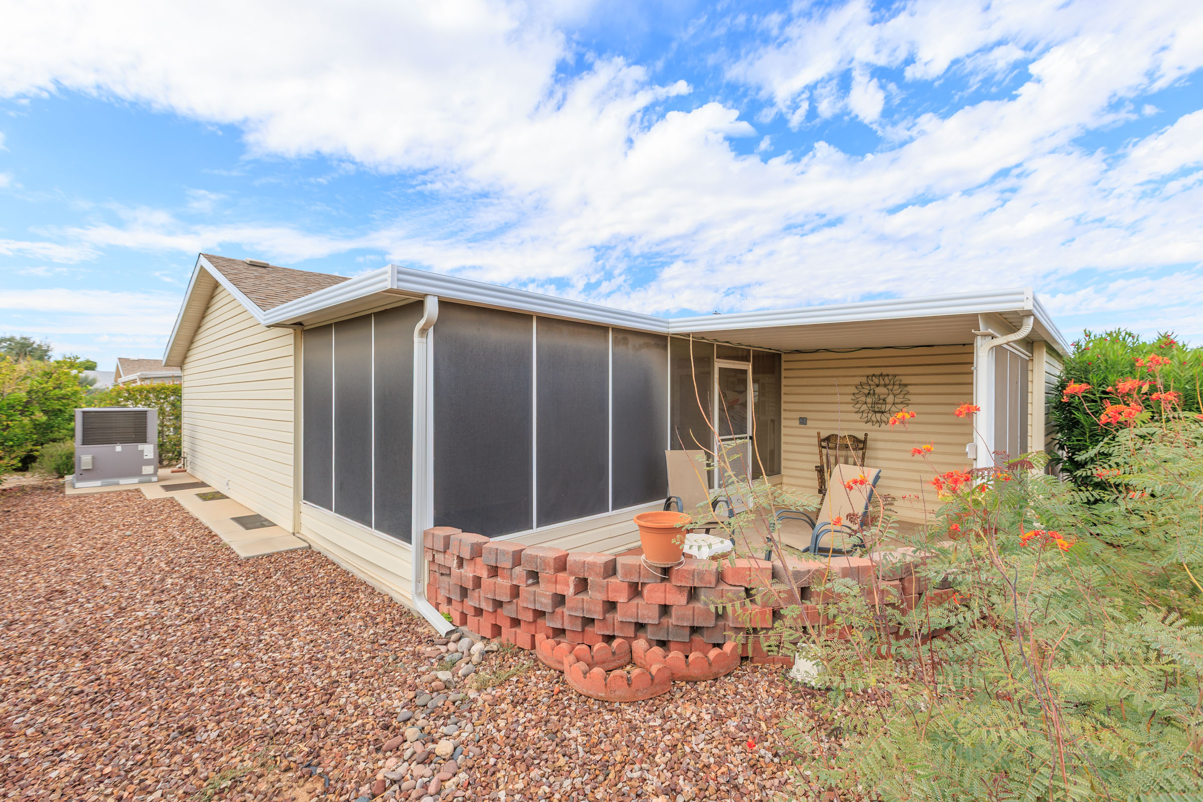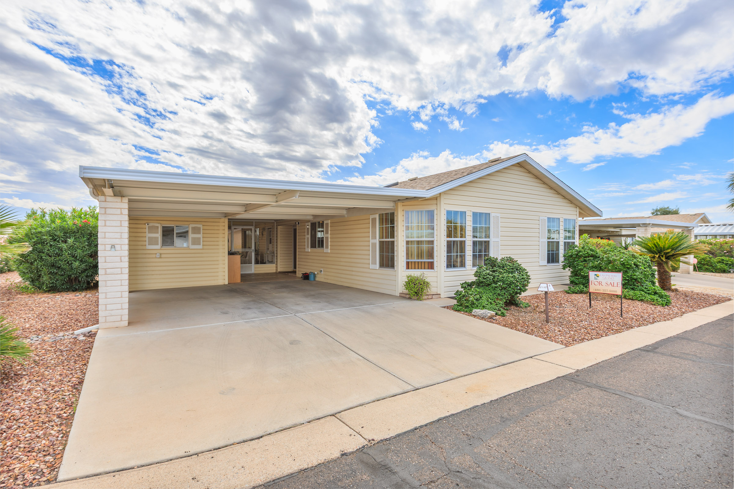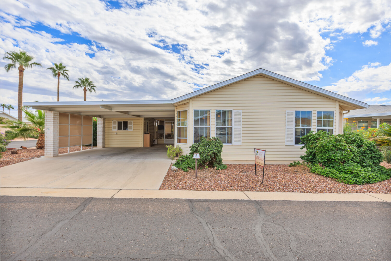 Beautiful corner lot this Belair just a few steps away from the Clubhouse with many outdoor recreational spaces. Carpet in bedrooms and living room. Light and bright with many windows to let the sunlight in to brighten the living spaces! Vertical blinds. Outside shed with laundry. Ready to move into any of the colorful spaces and make new memories!