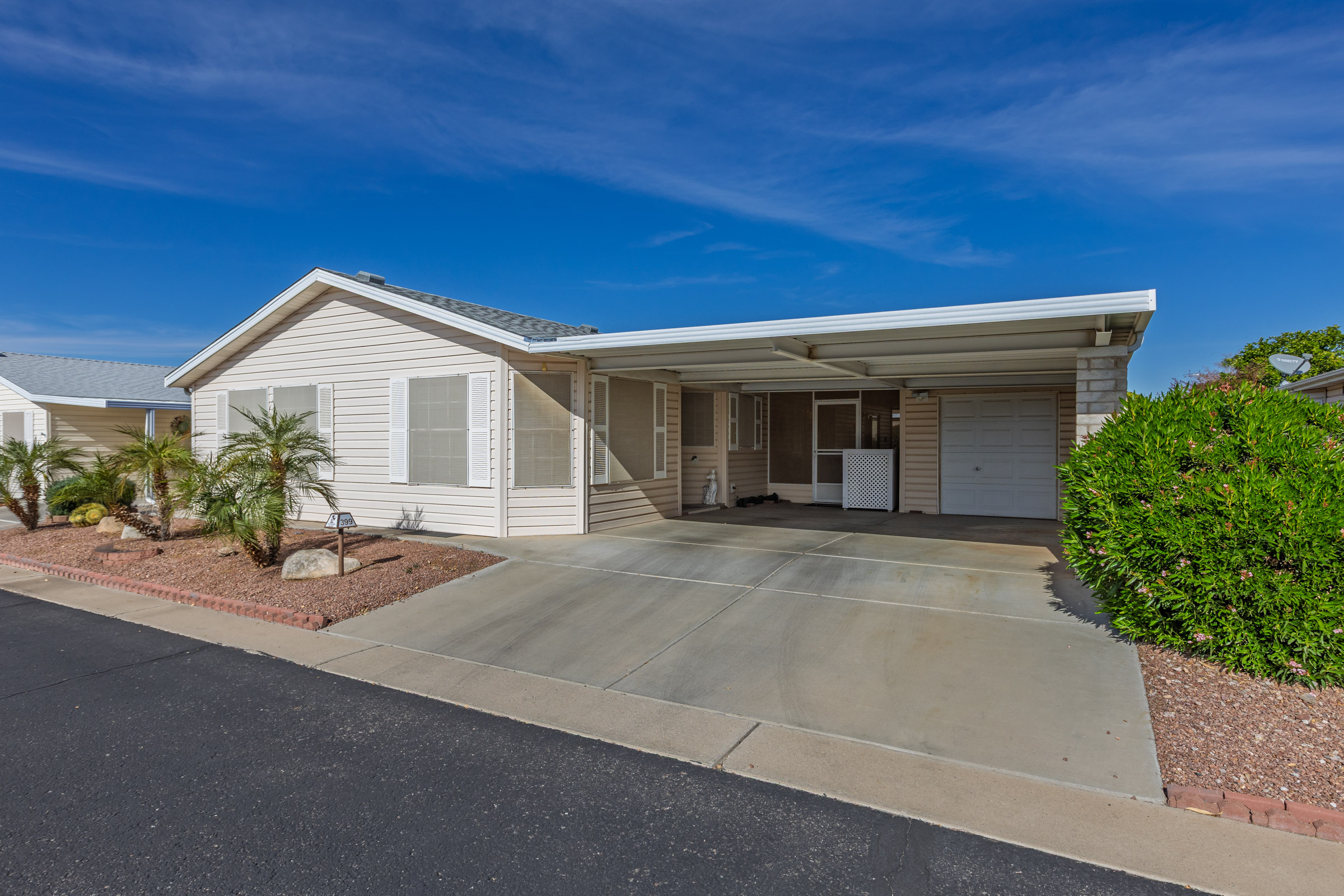 We have only had a few of these… Great space and storage throughout! This 2 bedroom 2 bath is a must see! The kitchen has a large Island to gather around for entertaining. Roof is 2 years old, 1567 square feet, heat pump 7 years old, water heater 2 years old. Az room is screened in to enjoy the Az weather. Las Palmas Grand has a 30,000 square ft Clubhouse with lots of activities to get involved in. There’s lots of concerts and dinners to enjoy. A heated pool and spa with water aerobics every morning. Call today for a tour 480-357-5000