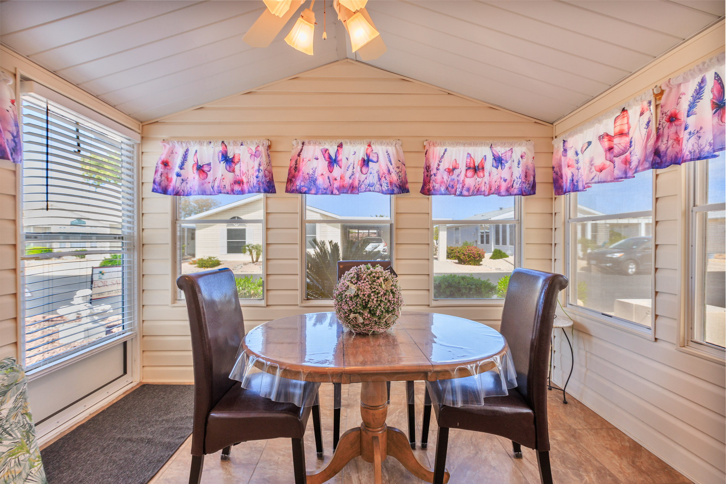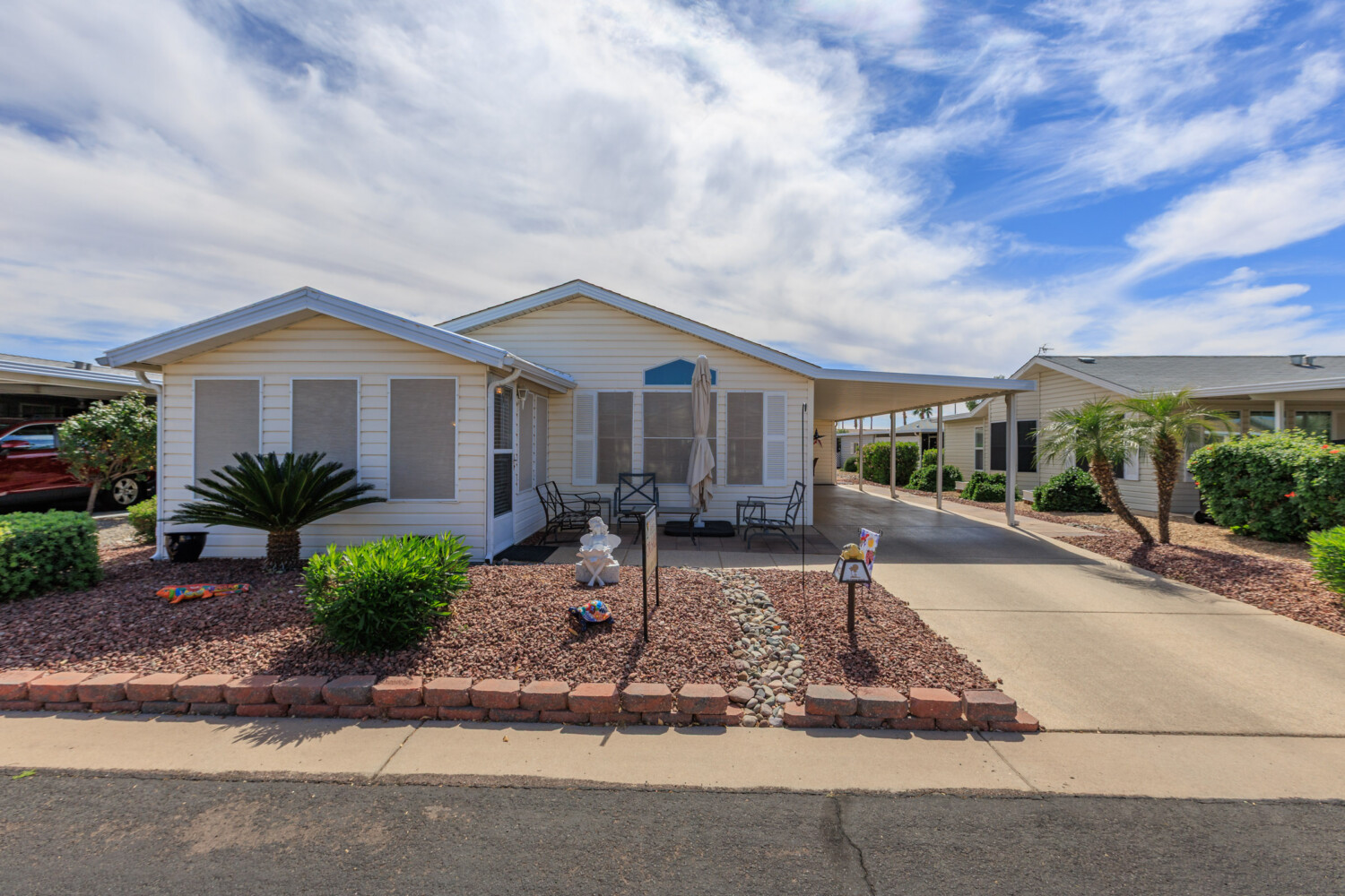 This sweet Newport is a MUST see! Complete with 2 bedrooms 2 baths and some beautiful upgrades. New stainless appliances, open concept floor plan, new paint, nice counter tops, custom walk in shower, luxury vinyl flooring no carpet, leveled in 2024, 2 x 6 construction, and more. This home has a glassed in Az room to enjoy and entertain. Come live in our beautiful resort style living community you will love it here! Call for a tour 480-357-5508
