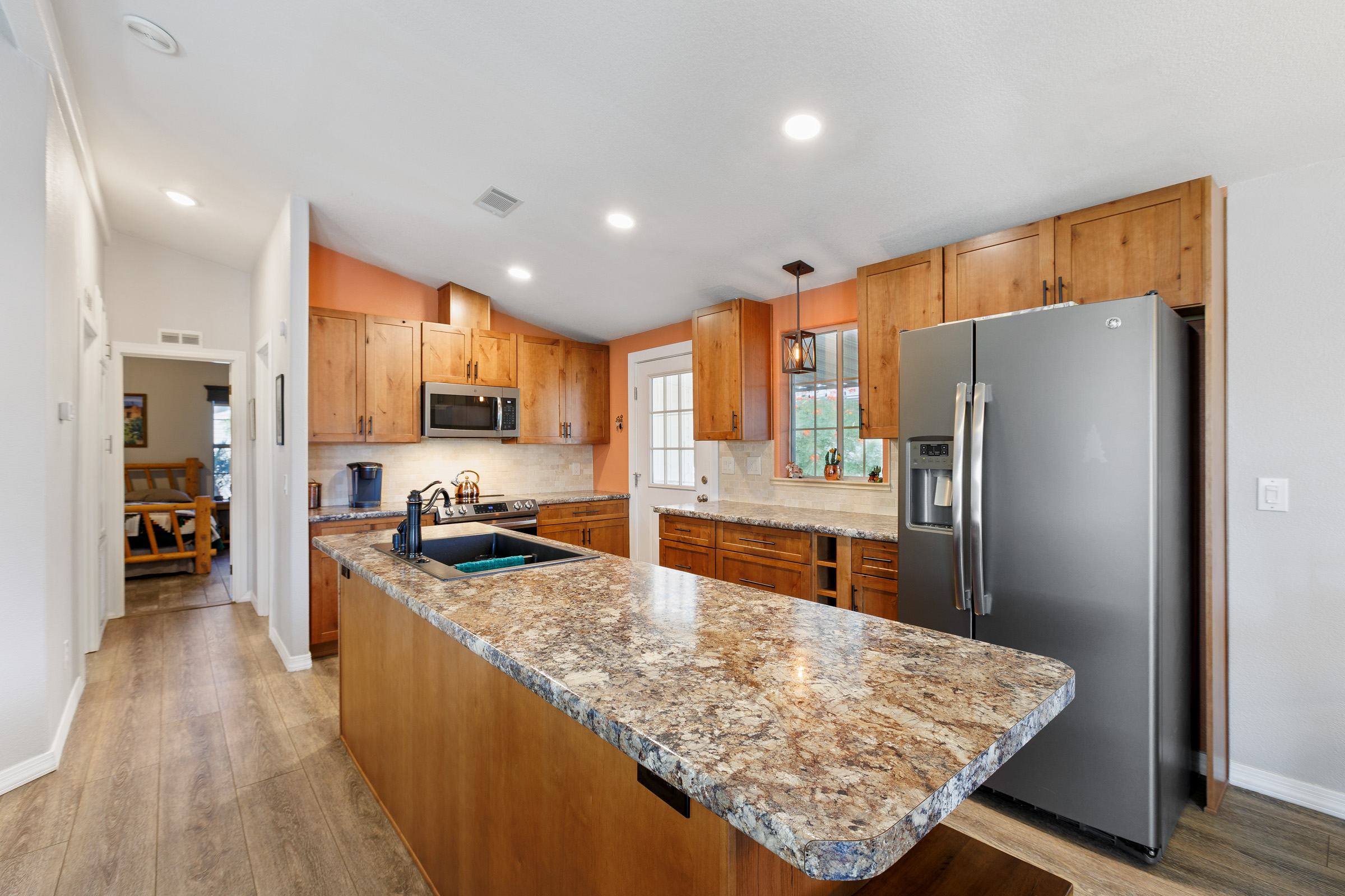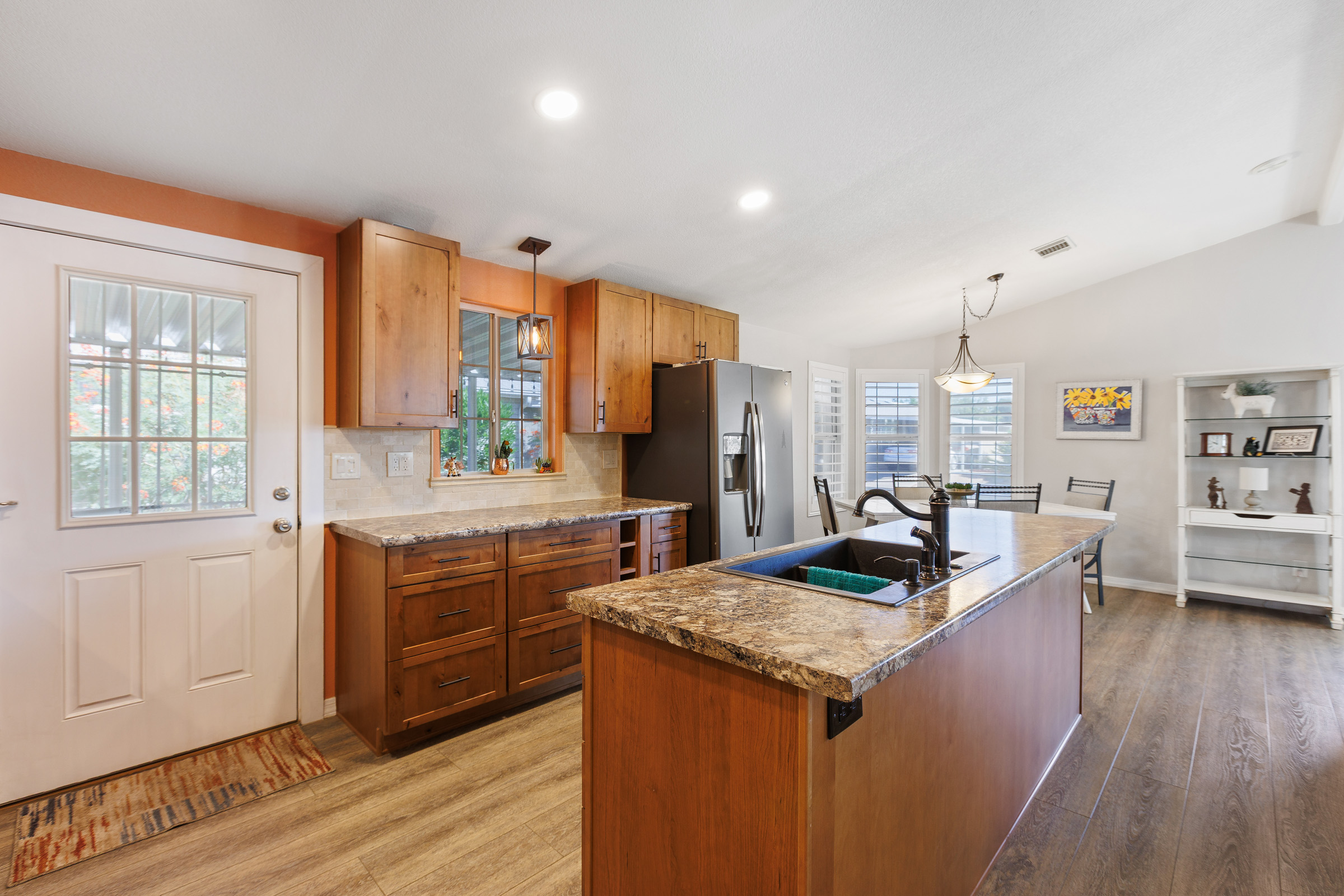 - High-pressure laminate countertops and backsplash