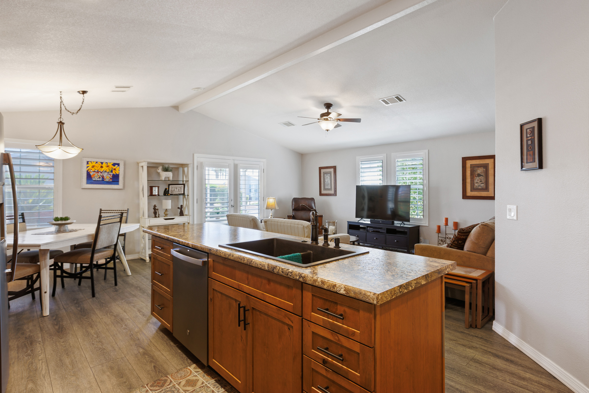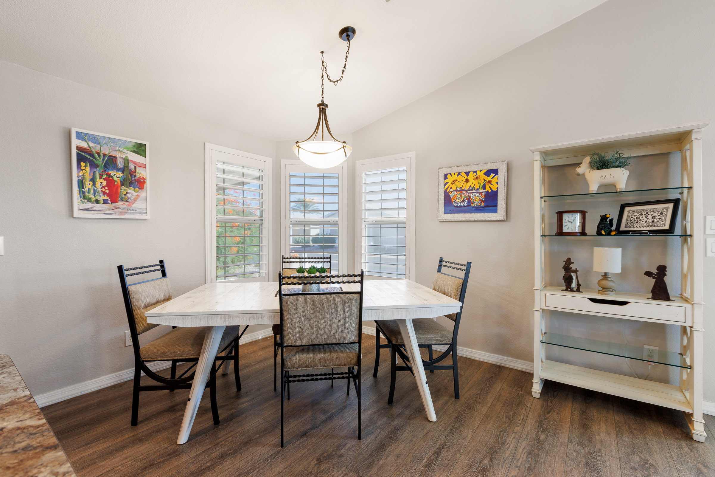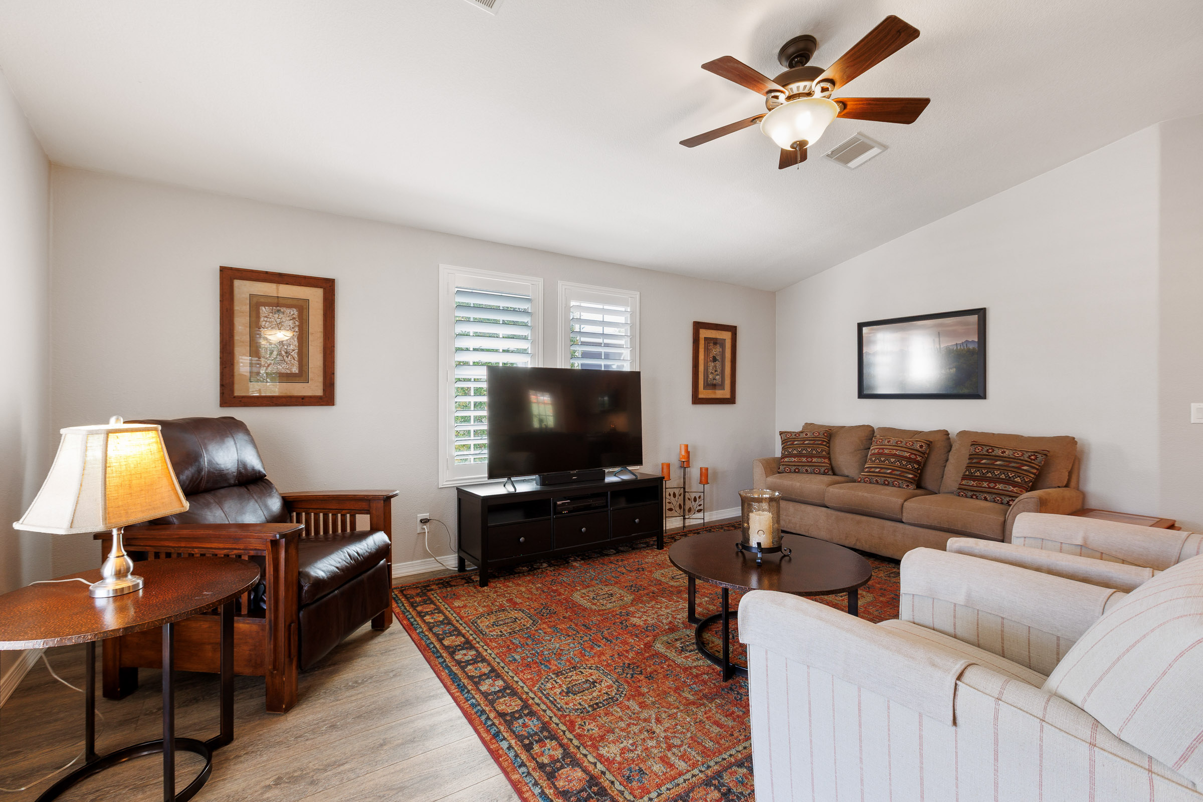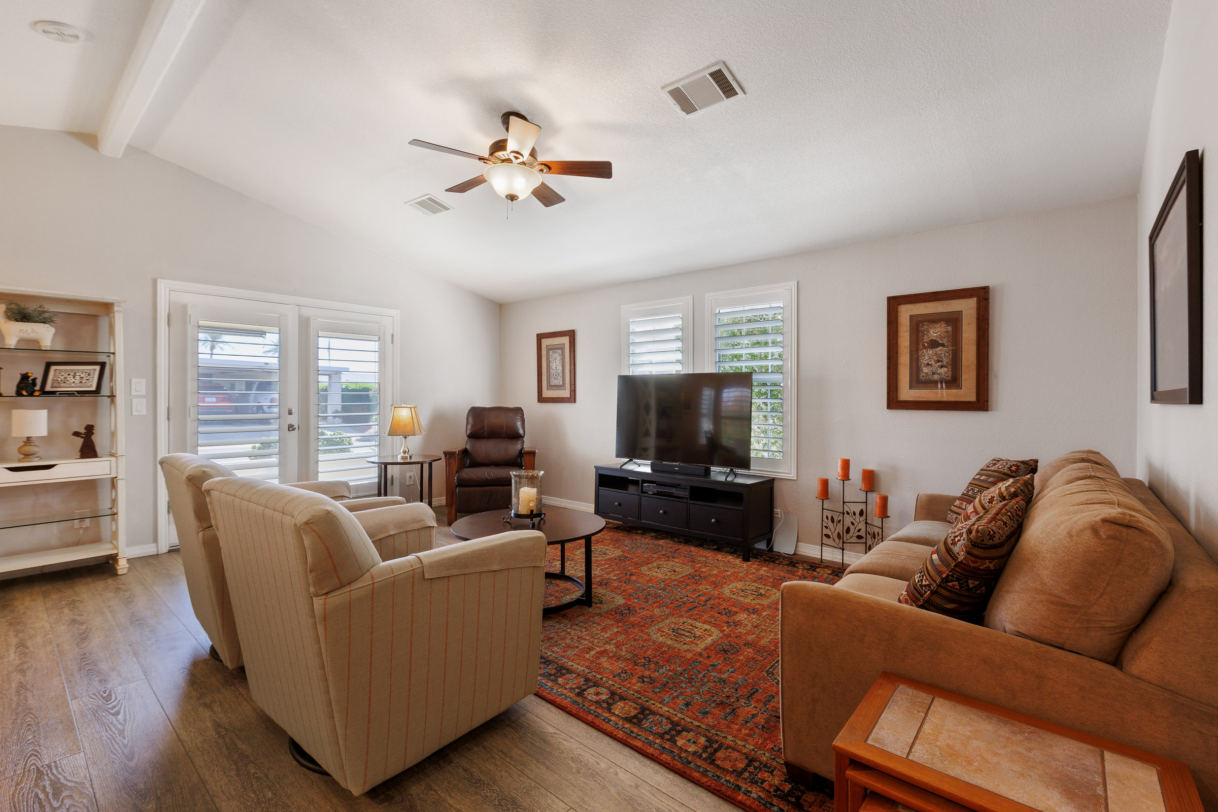 This home is beautiful, so well taken care of and upgrades galore! Luxury vinyl flooring throughout with ZERO carpet. Beautiful kitchen remodel from top to bottom. Stainless appliances including an induction stove/range & new dishwasher. New French doors with shutters to Az room and shutters in other major areas of the home. Large master closet. New bathroom vanities. New sprinkler system. Newer roof, heat pump, water heater. EVERYTHING is done here, don’t wait, call today for a tour 480-357-5508
