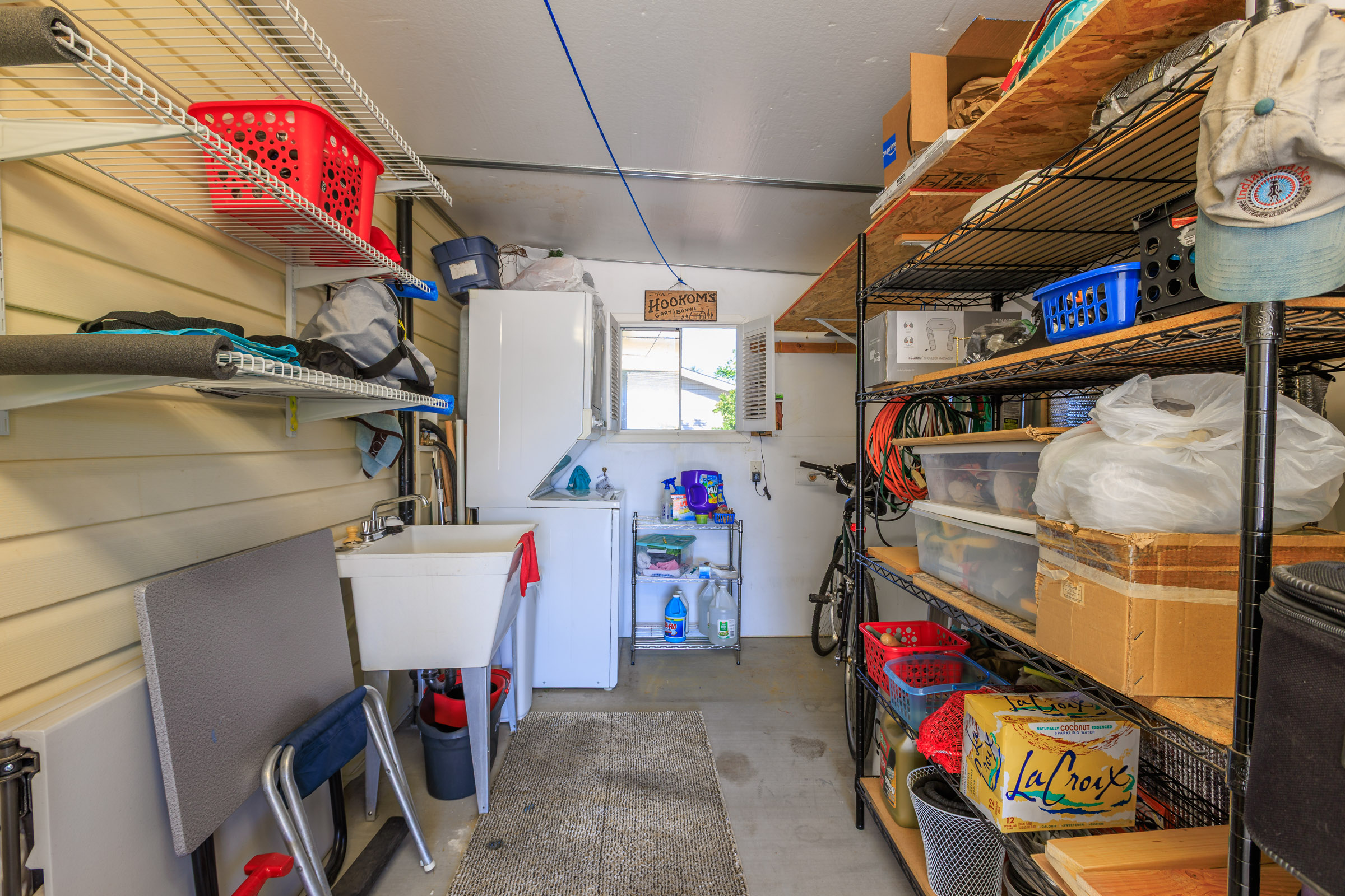 - Washer/dryer area, overhead shelf and built-in desk