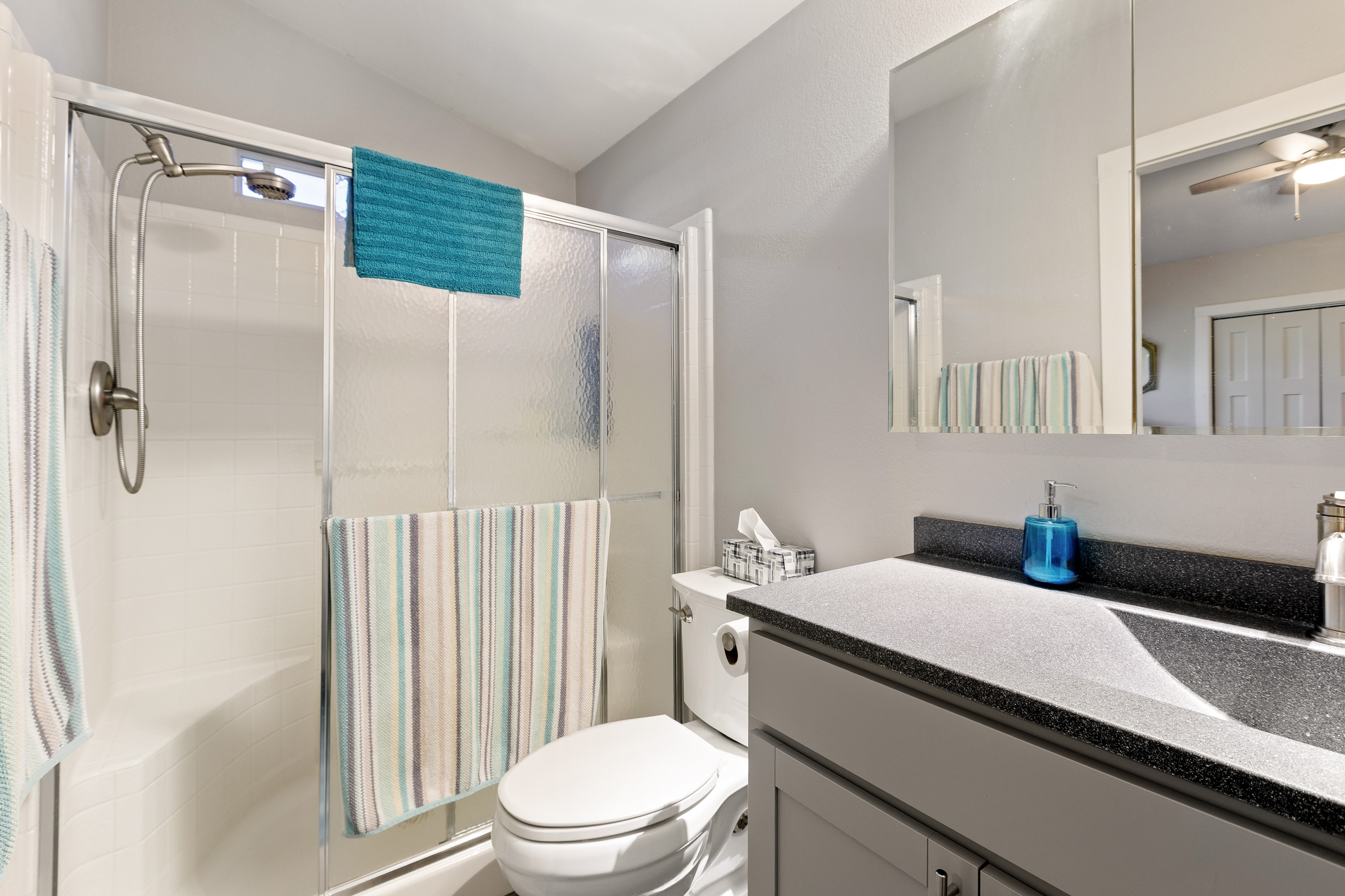 - Walk-in closet with double rods in master bath