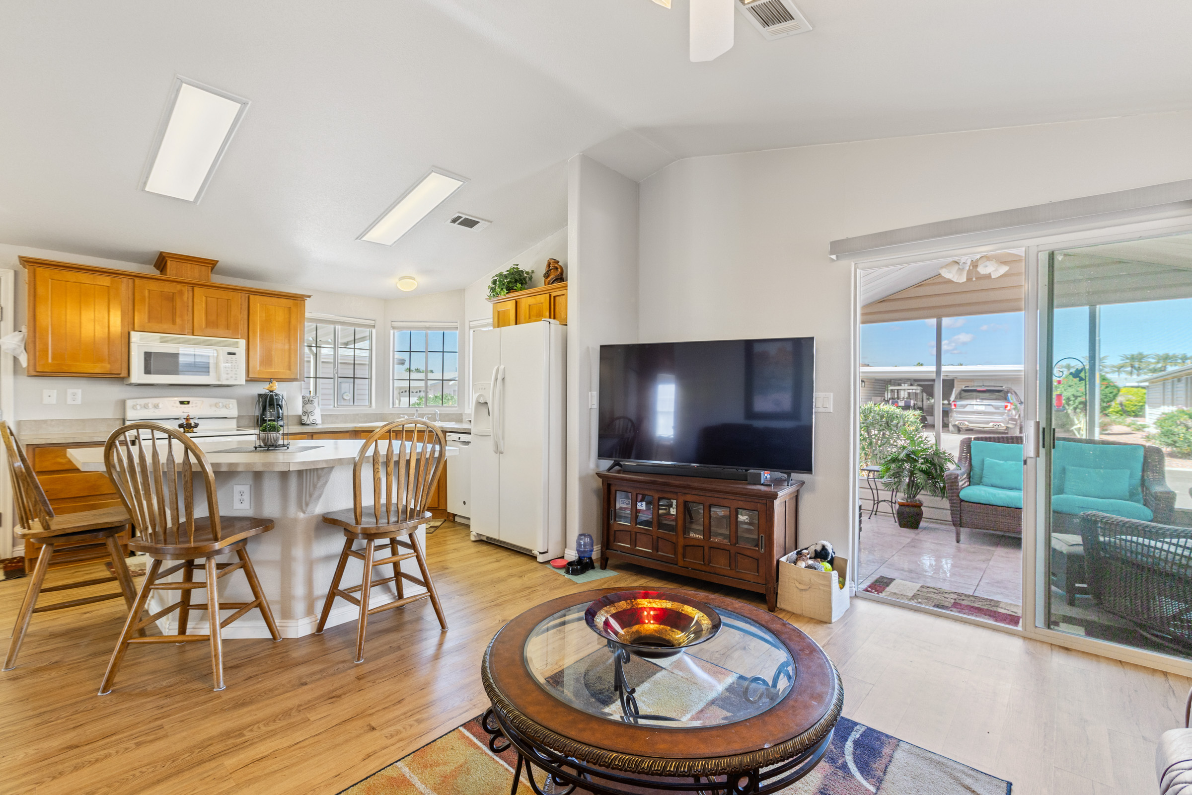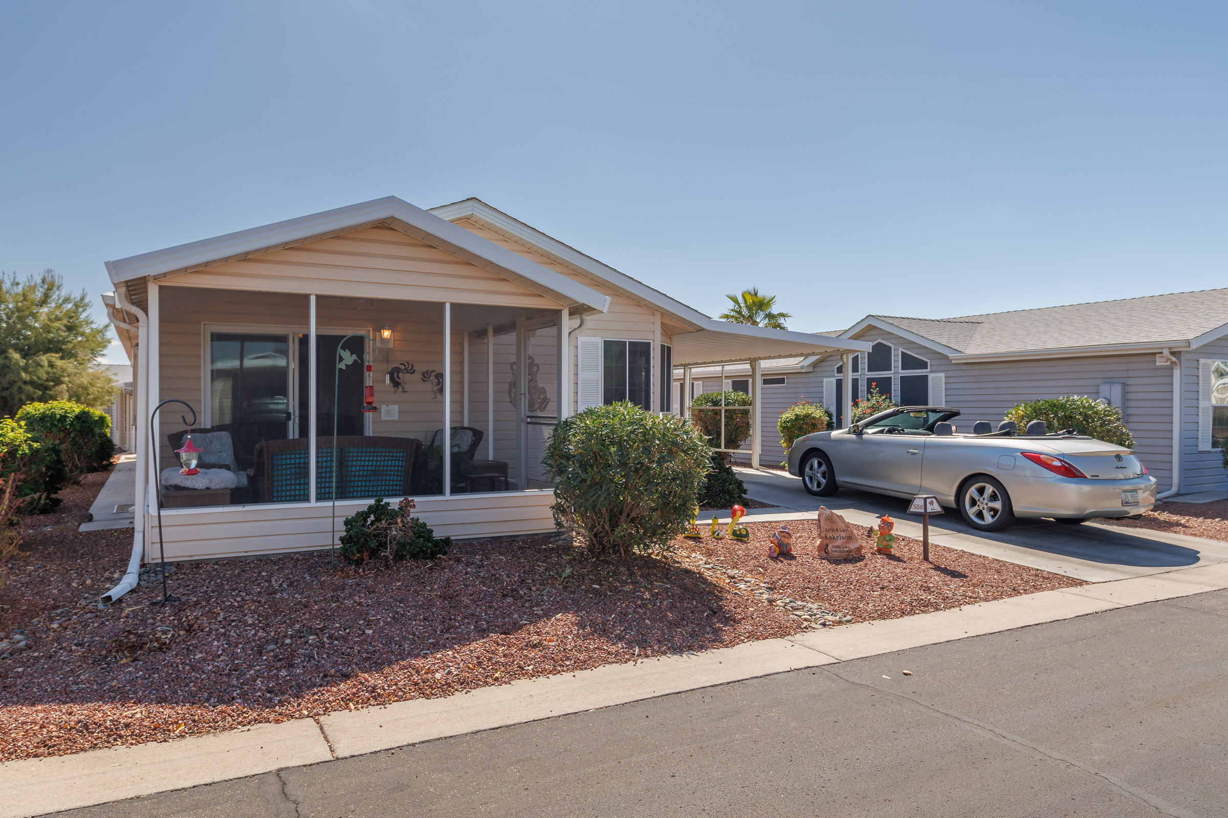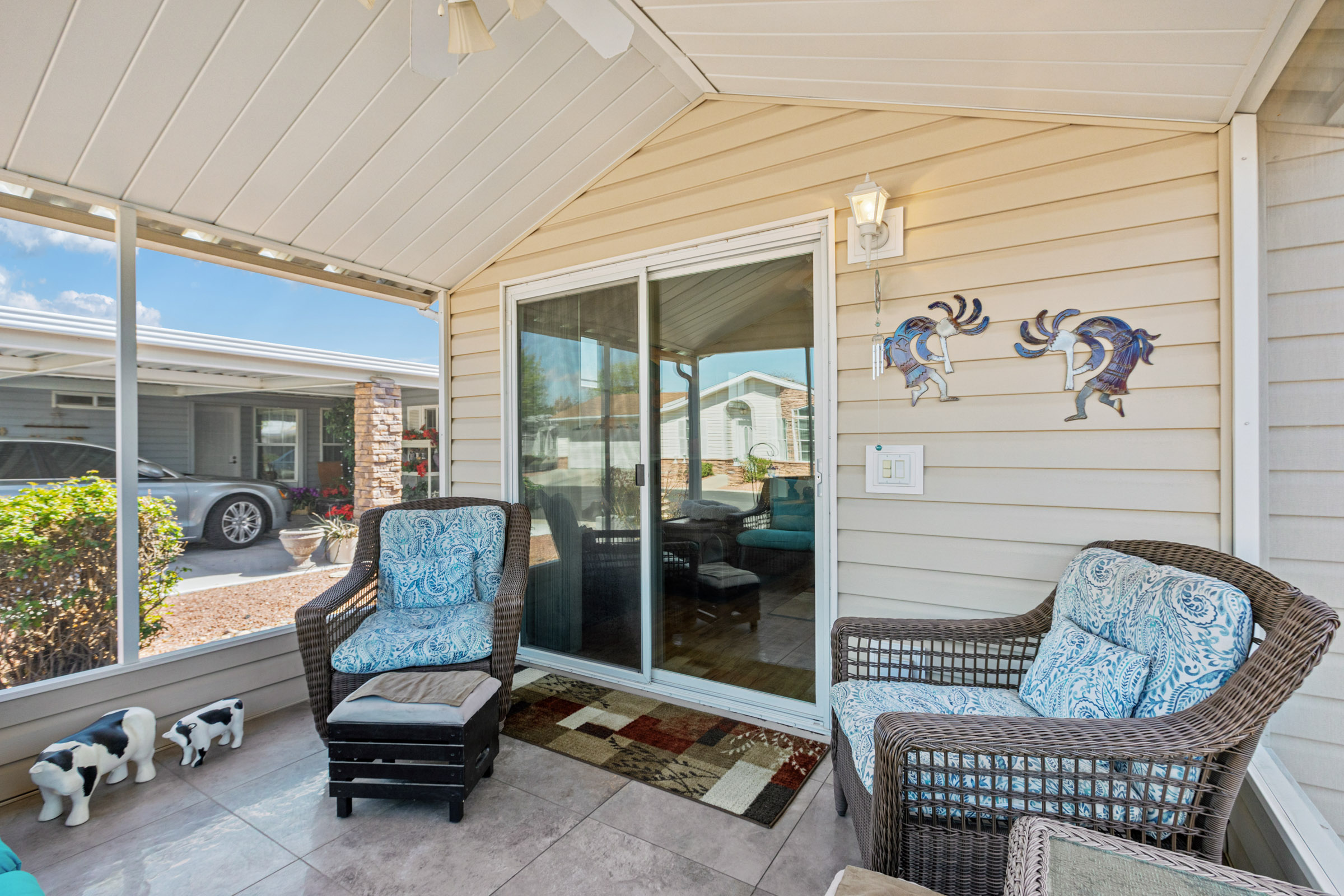 Welcome home to this adorable turn key 2 bedroom 2 bath open concept Austin! This is a 2006 Cavco model with nice finishes and an awesome screened AZ with tiled floor. Everything is here, just bring your suitcase and enjoy!