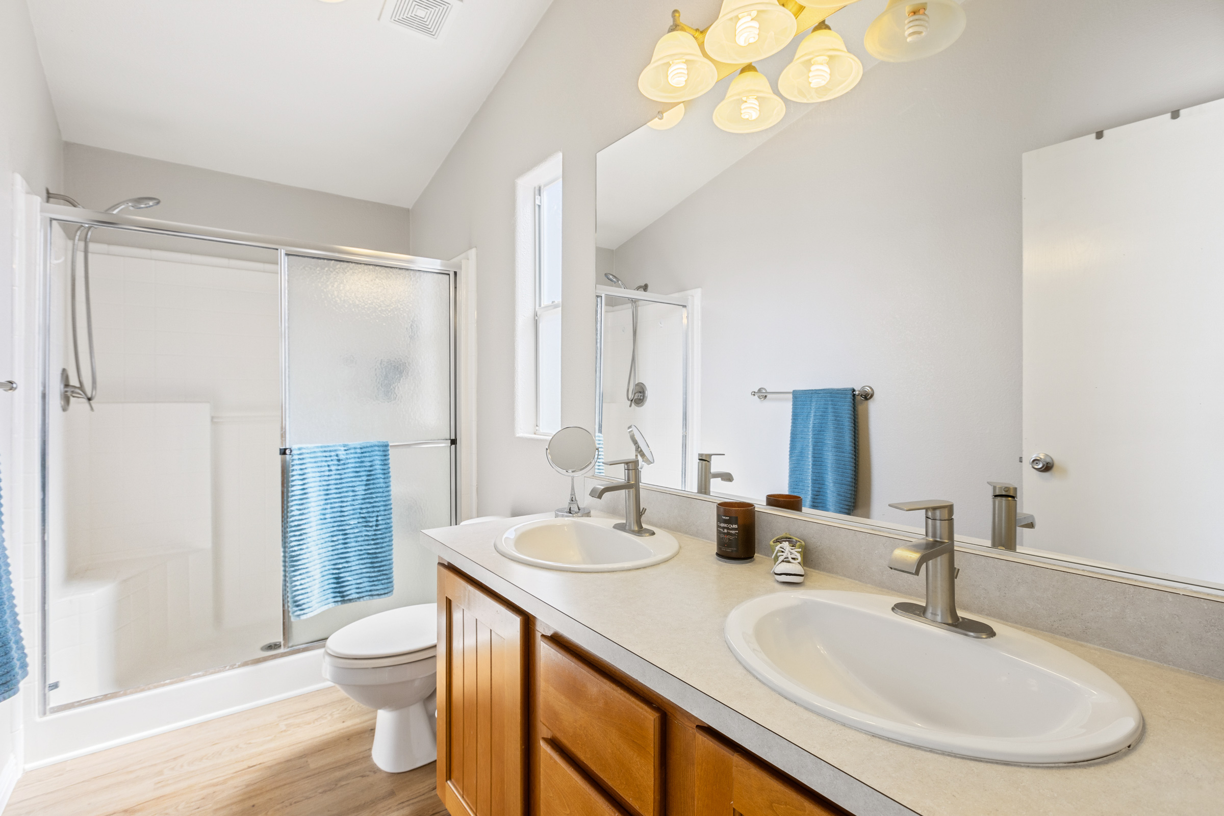 - Walk-in closet with double rods in master bath