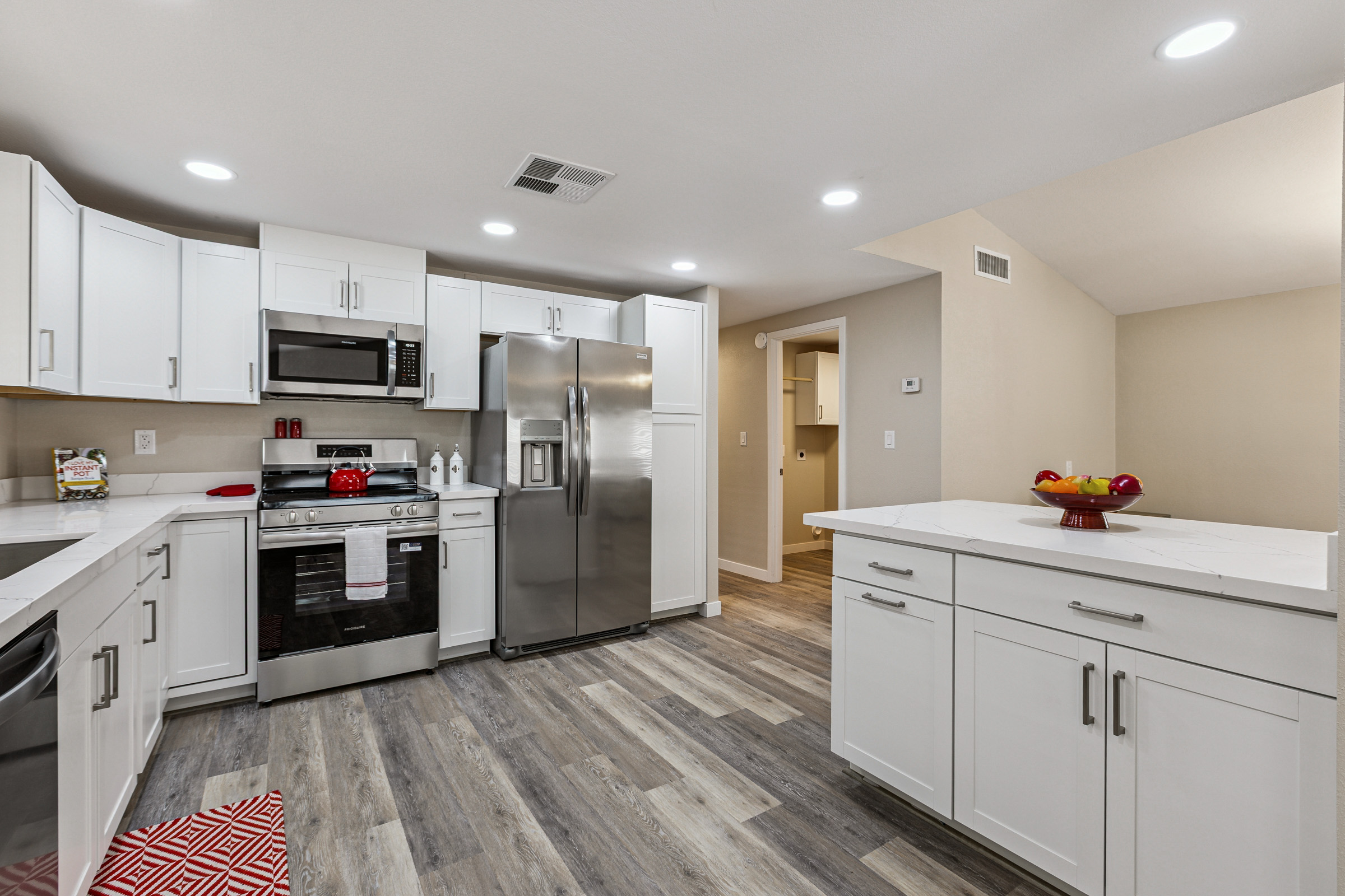Don’t miss out on this amazing remodel!!! 2 BD/2BA plus a den! Beautiful luxury vinyl flooring, new paint, baseboards (doors and trim), appliances, lighting, fans, kitchen cabinets and hardware. Replaced all outlets and switches throughout the home. New countertops throughout (Quartz). New Master Bath shower and vanity. New toilets and faucets.