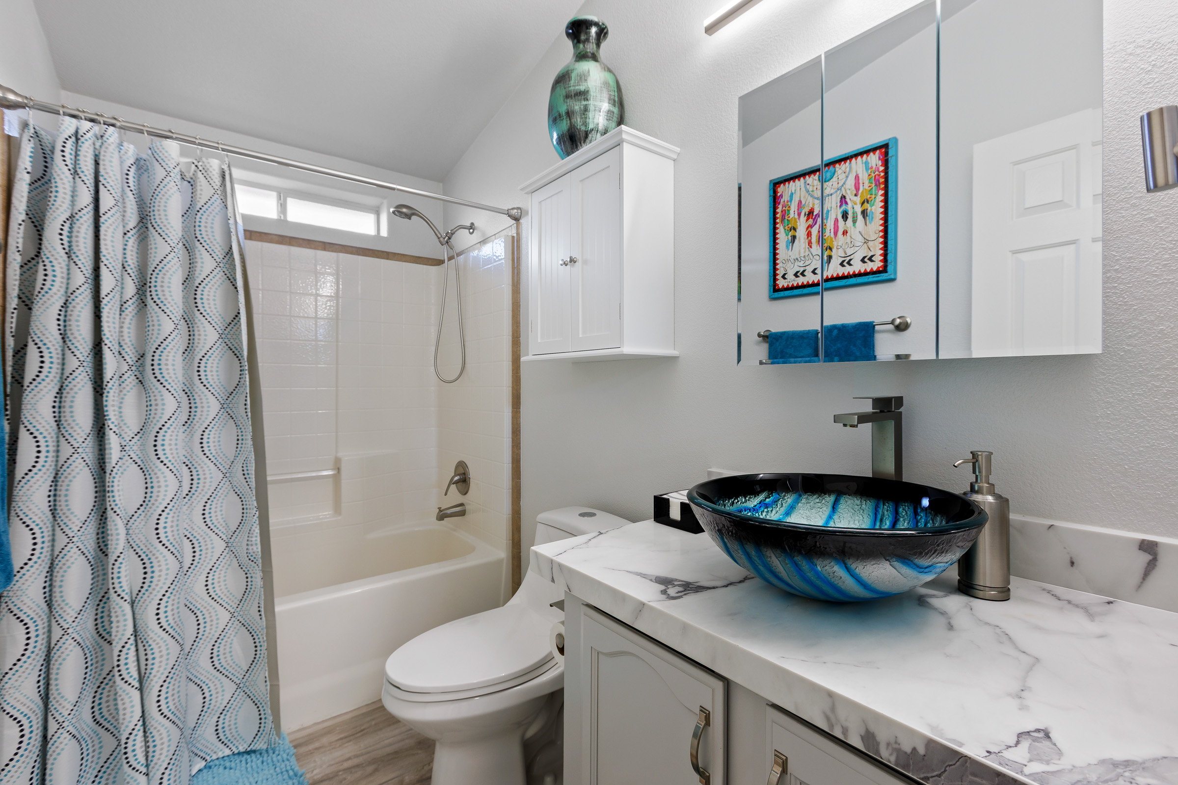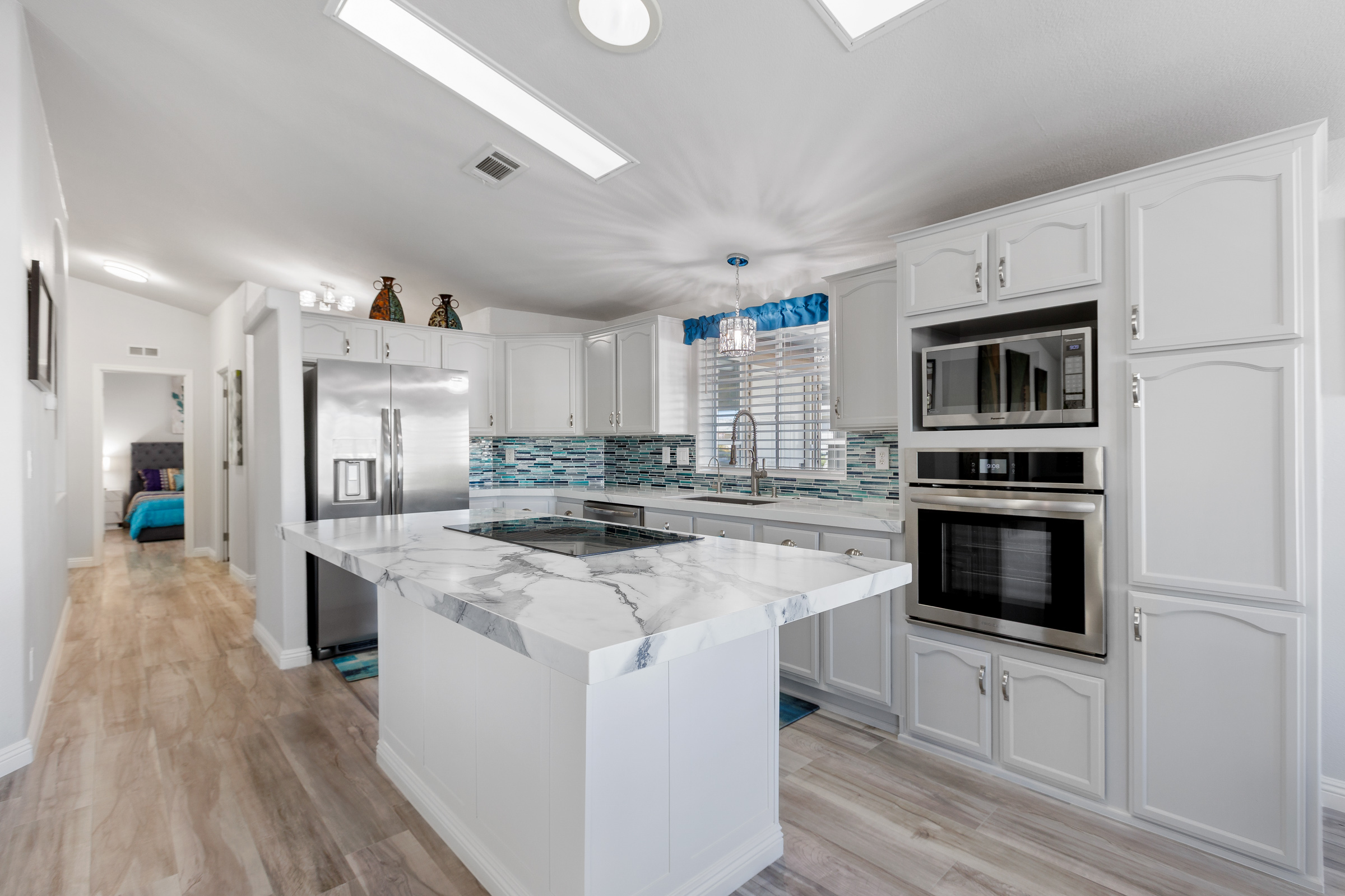 - High-pressure laminate countertops and backsplash
