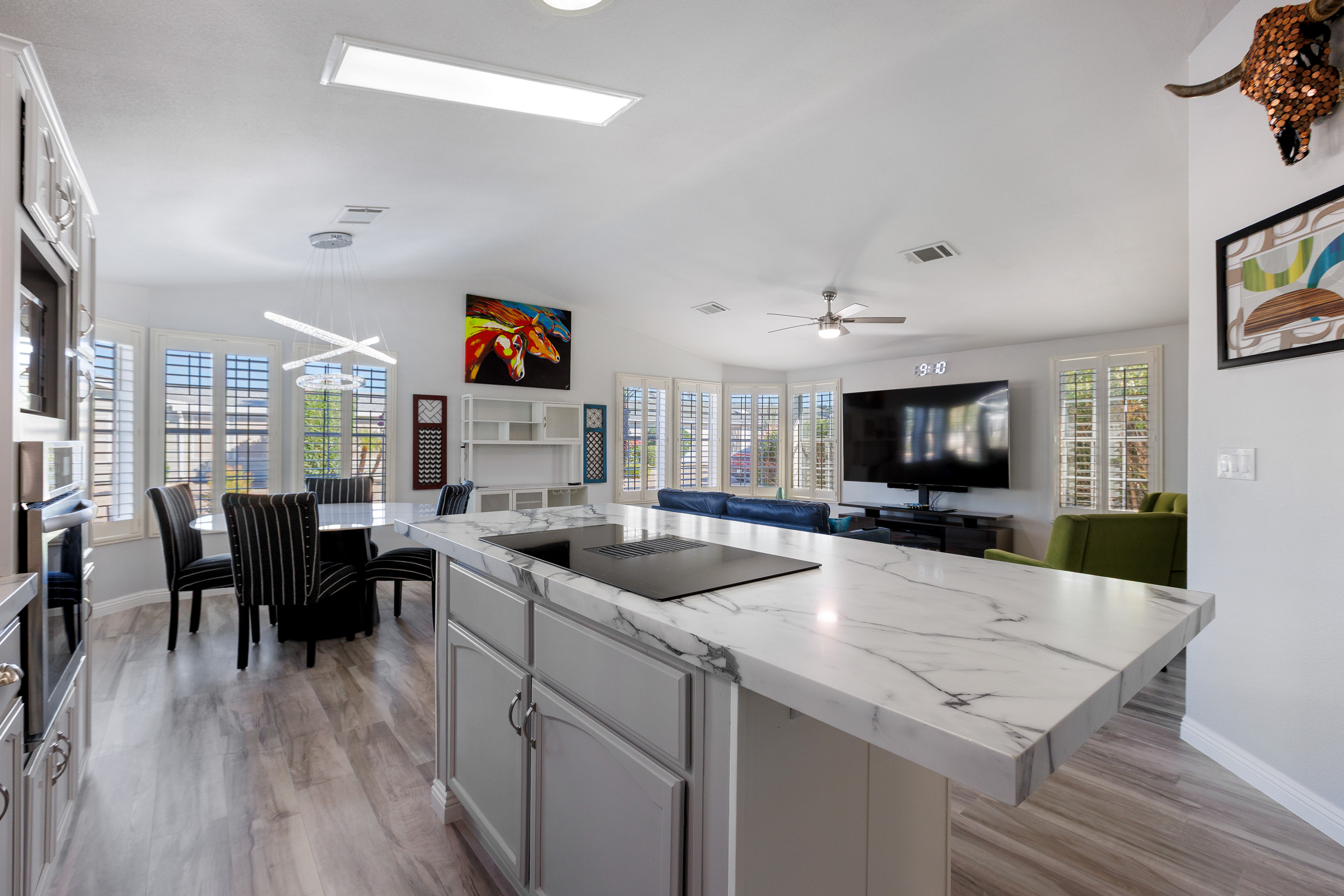 This home is amazing! It has so many upgrades and you will feel like you are walking into a model home. 2 x 6 construction, beautiful shutters, stainless appliances, luxury vinyl flooring, induction cooktop, quartz countertops, paint and baseboards. RO plus a loop for water treatment. All seasons Az room that is beautifully remodeled for that extra space all year round. Exterior patio is very inviting and you will love spending time outdoors. Call today for a tour 480-357-5000